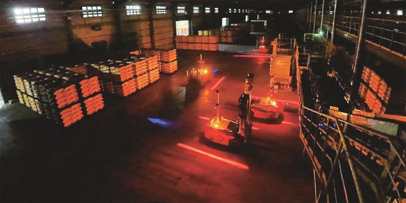 圖為AGV無(wú)人叉車(chē)在心連心集團(tuán)“黑燈倉(cāng)庫(kù)”嫻熟作業(yè)場(chǎng)面